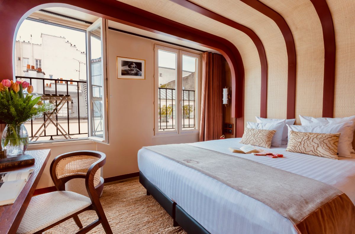 l’hôtel Sacha aspire dans cette rénovation du 5ème étage à offrir une expérience authentique et raffinée, honorant l’héritage de Sacha Guitry et la riche culture théâtrale de Paris.