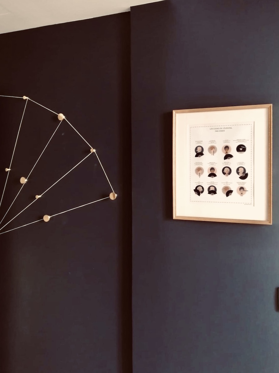 On le retrouve au mur encadré dans des petits tableaux, sur le lit par des jetés de lit spécialement fabriqués et brodés d’un éventail, et par des patères dorés servant de porte-manteaux ,disposés en forme d’éventail.
