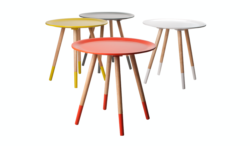 ces petites tables très colorées, existent en gris foncé, orange, jaune, blanche, noir, bleu.