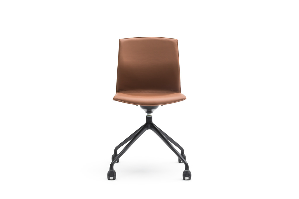 Chaise avec ou sans accoudoirs, idéal pour hôtellerie et les projets de bureau. Il existe des versions avec structure pivotant en aluminium ou en bois.