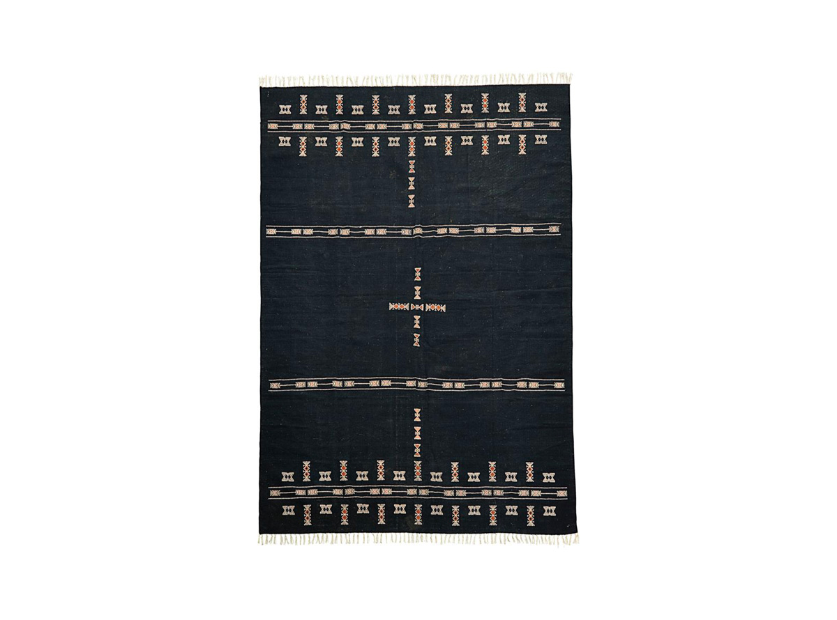 Ce tapis en coton, polyester et viscose, a nettoyer qu’a l’aspirateur .
