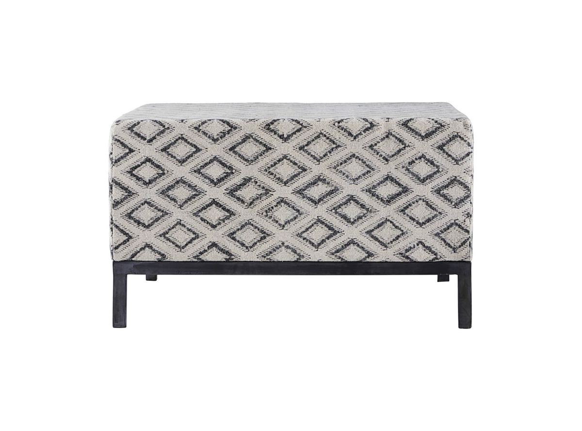 Pouf design pouvant servir de repose pied, mis côte à côte de petit canapés.