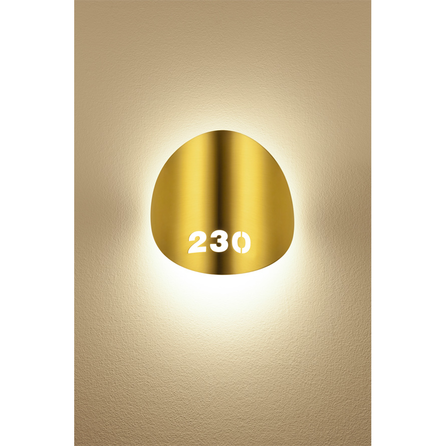 Petite applique de couleur laiton. Elle existe en noir, avec ou sans numéro de chambre.
