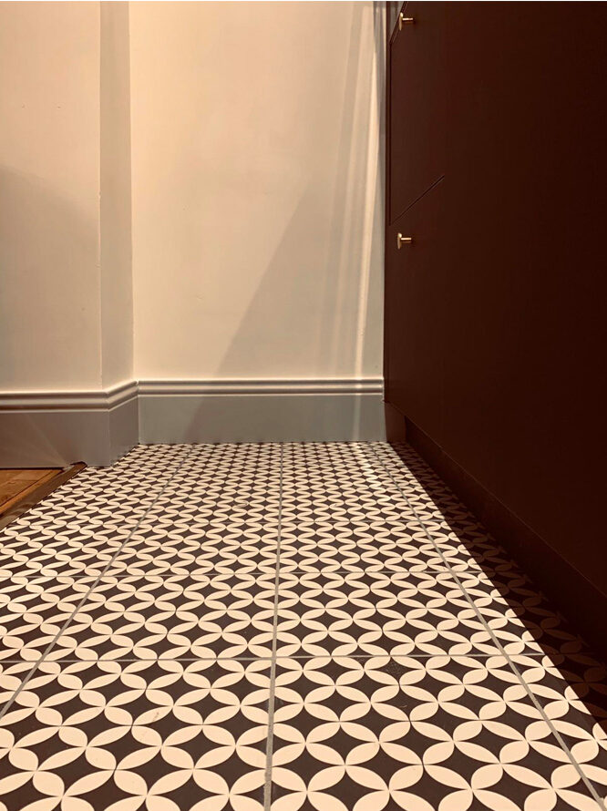 Certains placards ont été adaptés et découpés sur place pour suivre les dessins des corniches:un travail d’expert!
