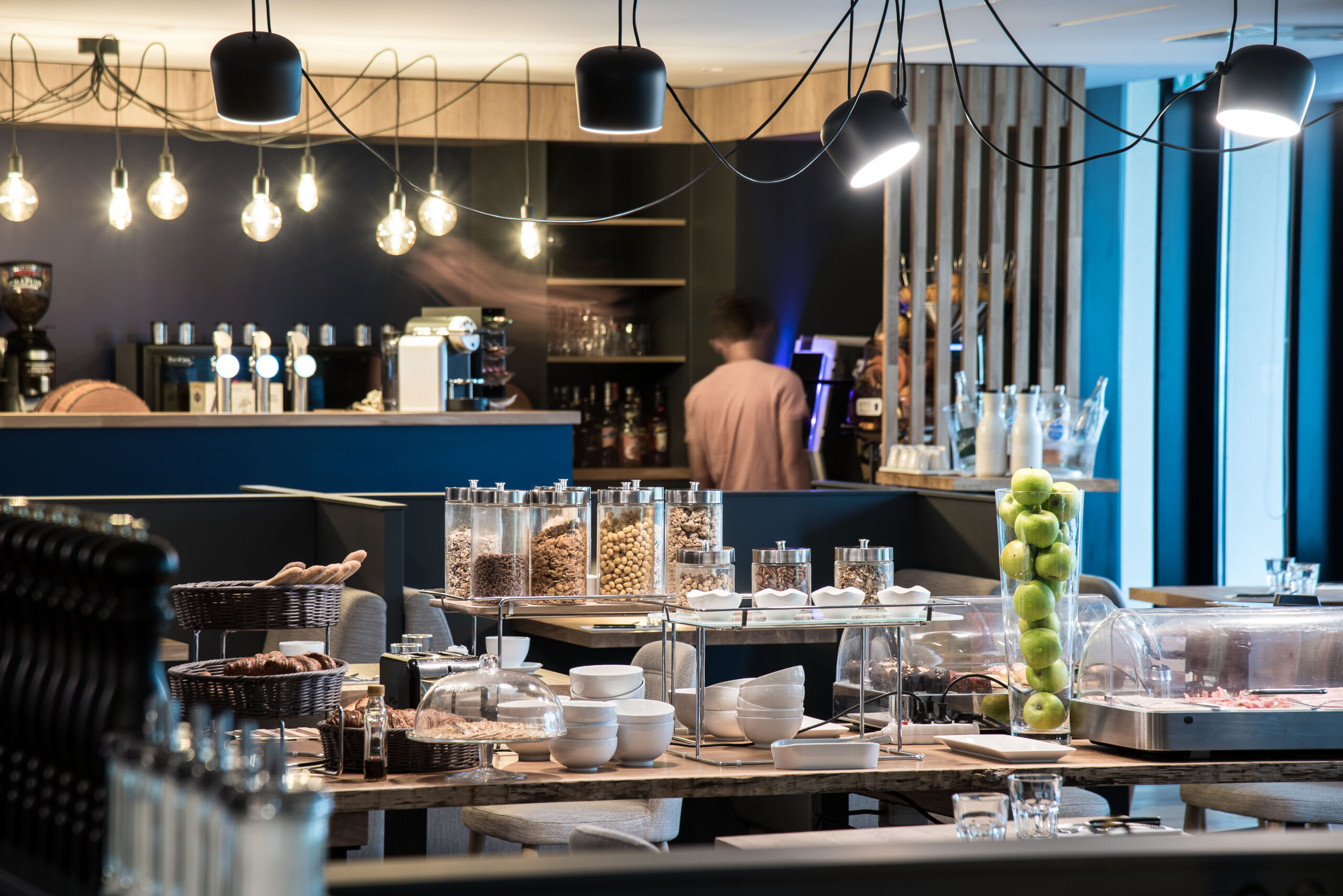 Cet hôtel a St Etienne est un hôtel de prestige recevant beaucoup de clientèle professionnelle. La décoration devait suivre le thème de la viande bovine car la brasserie se spécialise dans les plats à base de viande C’est un hôtel recevant beaucoup de clients d’affaire la semaine et les week-end beaucoup de familles Il fallait trouver du mobilier solide, esthétique,avec des tissus ne se tachant pas pour les chaises. Nous avons trouvé des chaises en tissu structuré non feux, s’alliant parfaitement aux tables en bois de chêne.