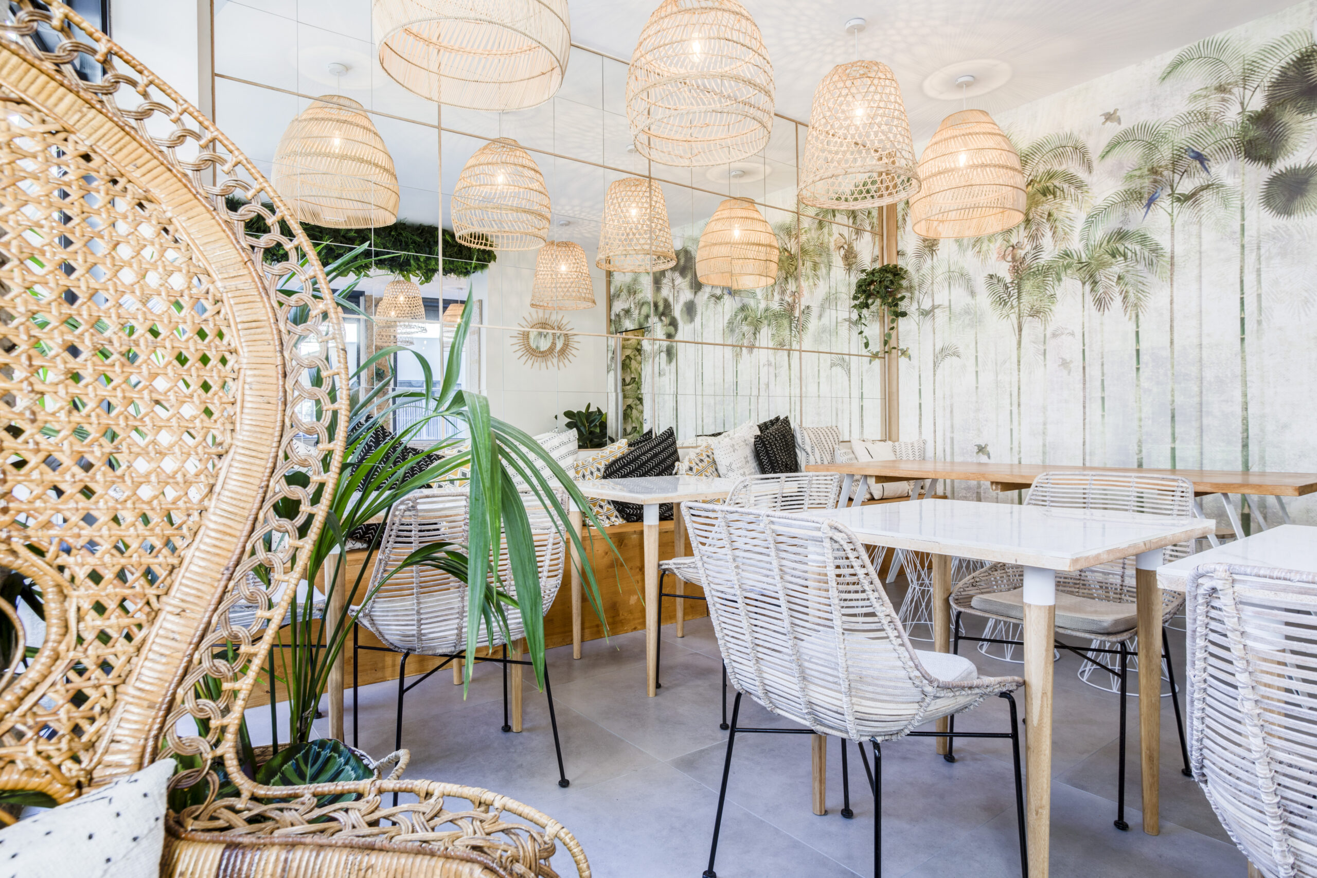 Dirigée par une jeune et dynamique entrepreneuse, ce petit restaurant dans Lyon 3ème voulait avoir un goût d’exotisme. Nous avons cherché ensemble des produits sur le thème des voyages, orienté rotin dans un esprit zen et nature. Le mobilier d’importation recréé cette ambiance que nous retrouvons dans les isles.